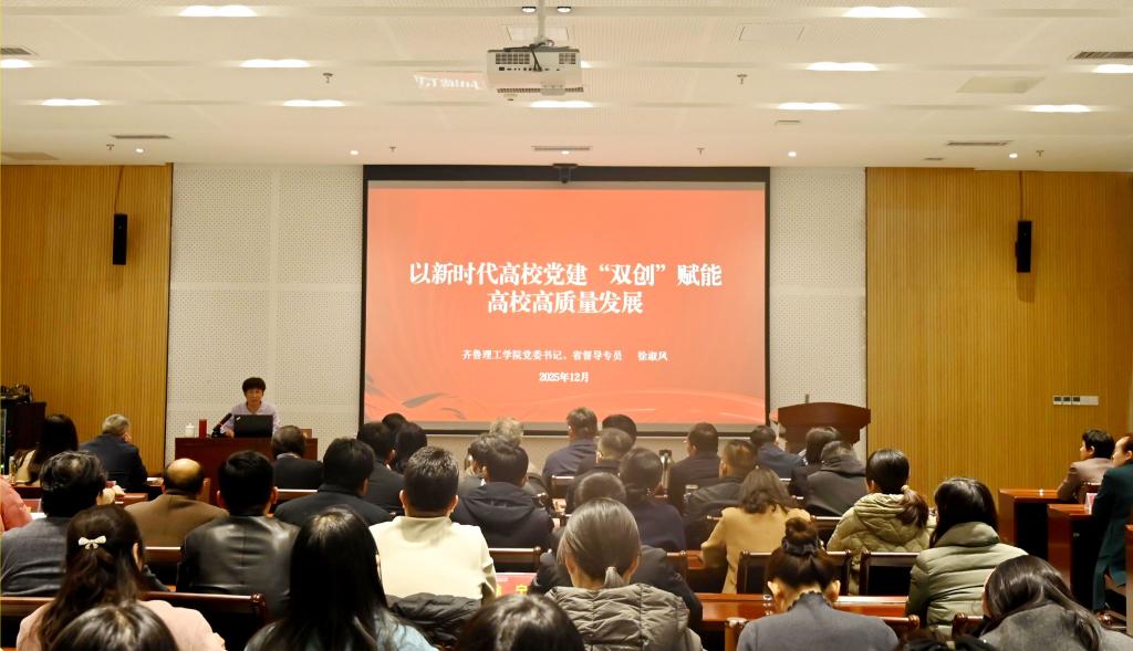 本网讯 为切实提升党建工作质量,推动党建与学校发展深度融合,12月4日下午,我校特邀齐鲁理工学院党委书记、省政府派驻督导专员徐淑凤教授来校作“以新时代高校党建‘双创’赋能高校高质量发展”专题报告会。校领导,各处室负责人,党总支书记(副书记)及党总支委员、专职组织员、各支部书记参加。报告会由党委书记张玉录主持。