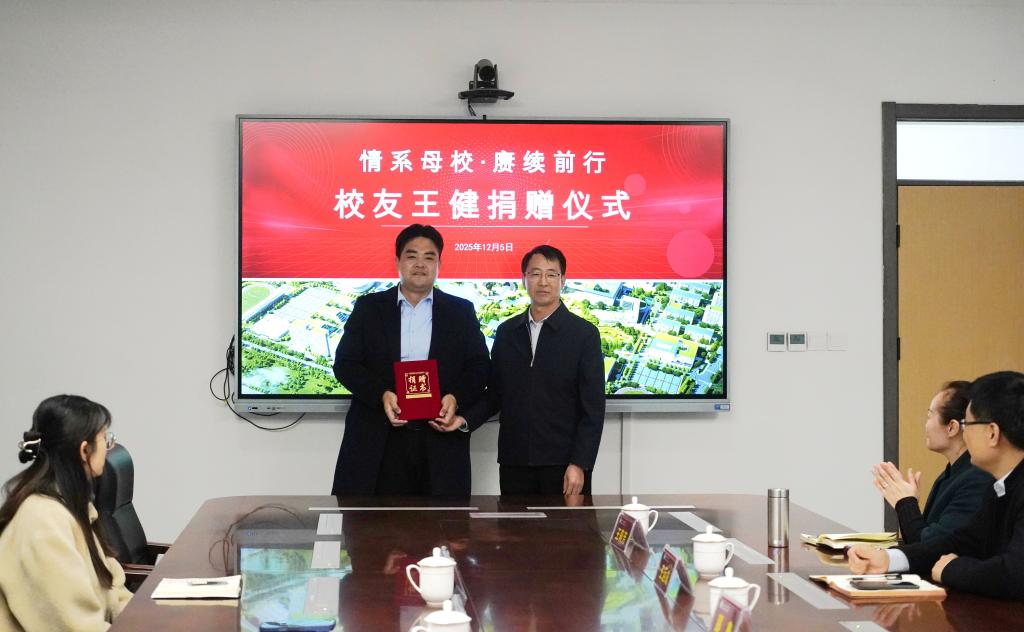 王健深情回溯了母校求学时光,讲述了企业及个人成长历程,对母校及恩师的培育之恩表达谢意。他表示,母校筑牢其成长根基,奉献社会源自母校的精神传承,此次捐赠既是回应母校培育之恩,更是以实际行动承接这份奉献的“接力棒”,希望能够带动更多的校友关注母校的发展,为母校的建设添砖加瓦。